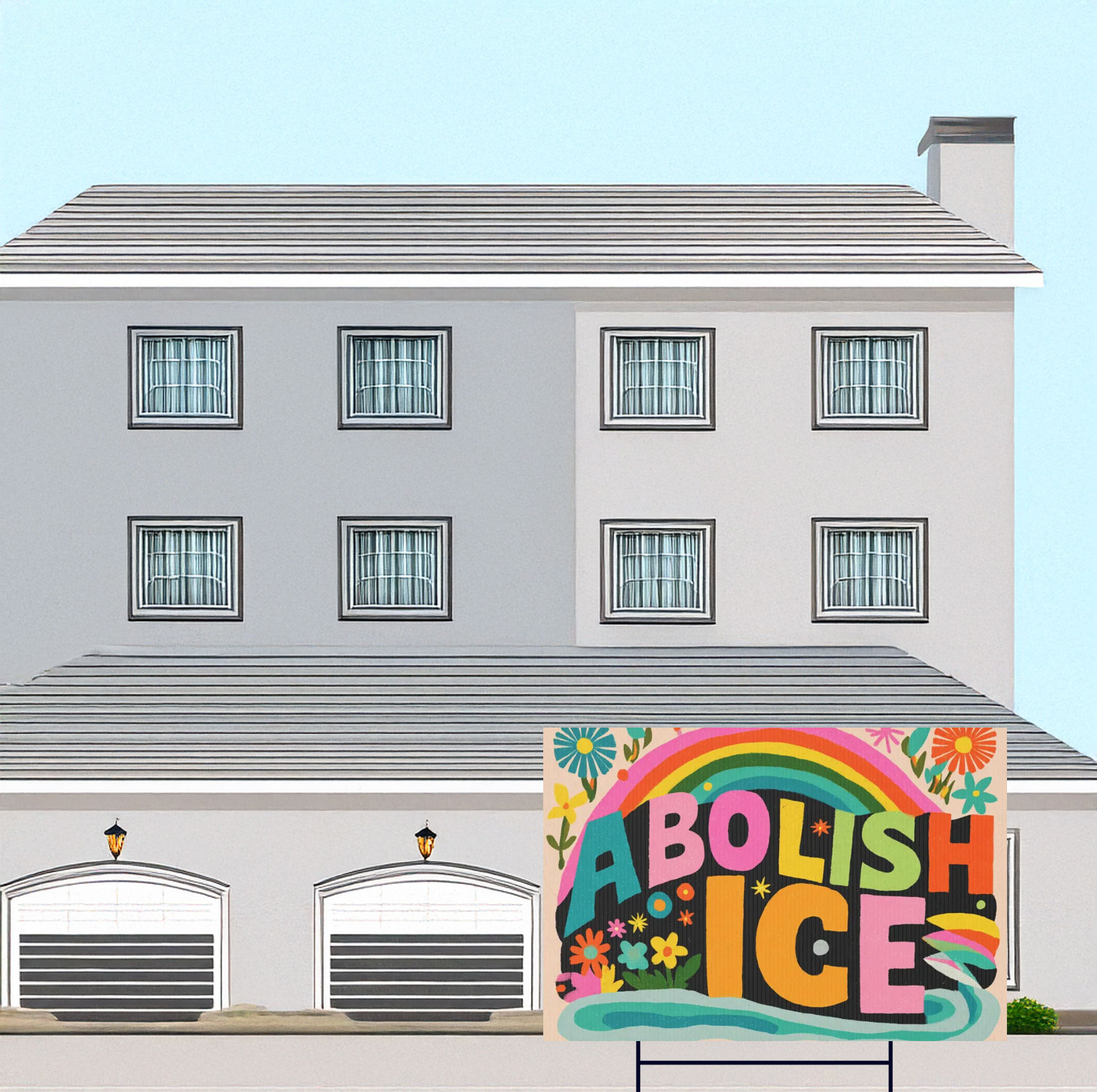 The Abolish ICE Flowers Yard Sign pairs a strong call for immigrant justice with a gentle, floral design—showing that resistance can be rooted in care, humanity, and hope. This sign communicates political opinion and solidarity without promoting harm or violence.