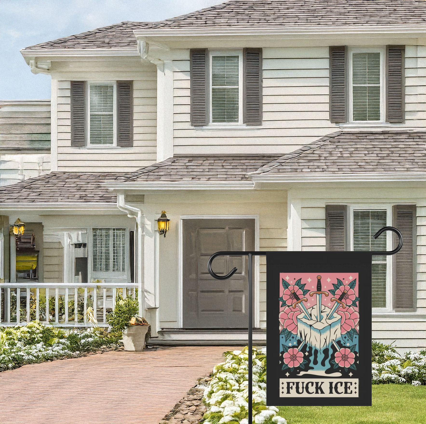 Ideal for homes, porches, gardens, classrooms, offices, and community spaces, this flag makes a clear statement while remaining approachable to a broad audience.