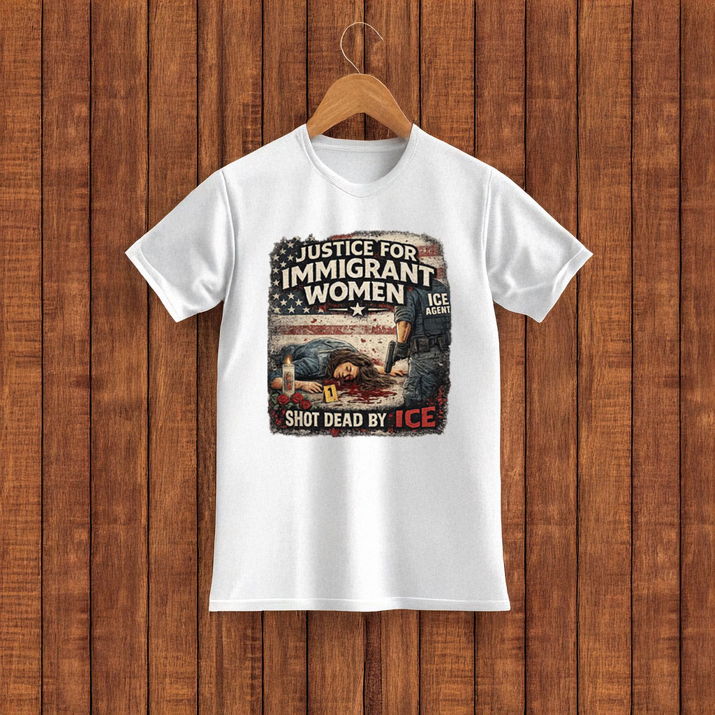 Features bold typography such as “Justice For Immigrants”, making your values visible at rallies, marches, or in everyday life. -